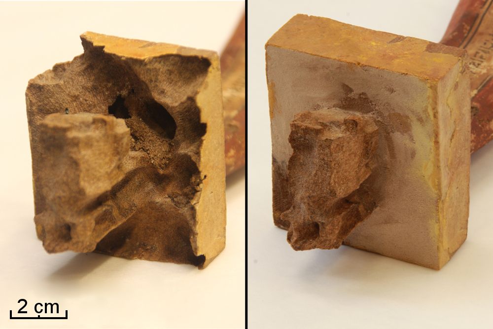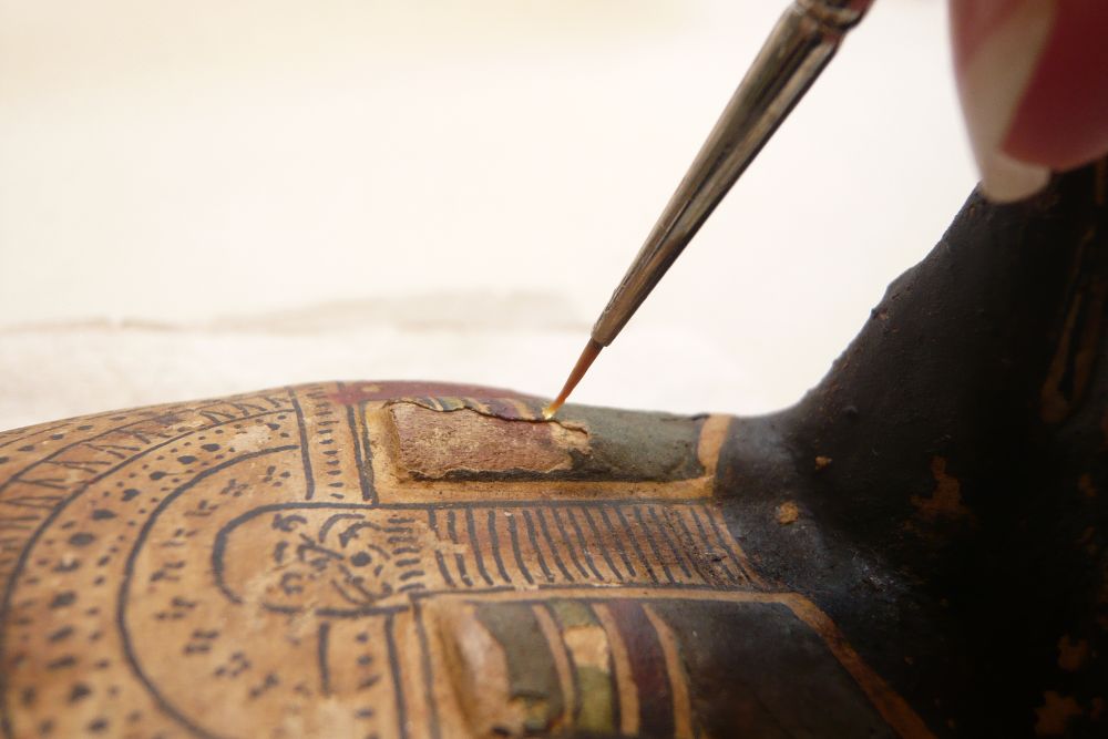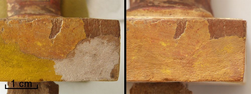 Die restauratorischen Arbeiten umfassten in erster Linie eine aufwändige Reinigung aller Teile, aber auch die Festigung und stellenweise Ergänzung.