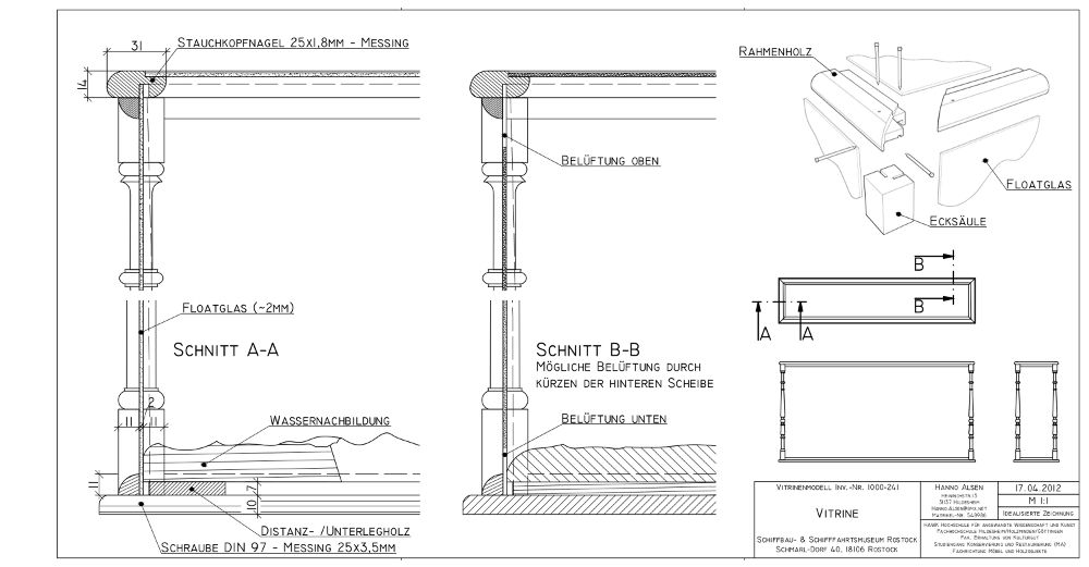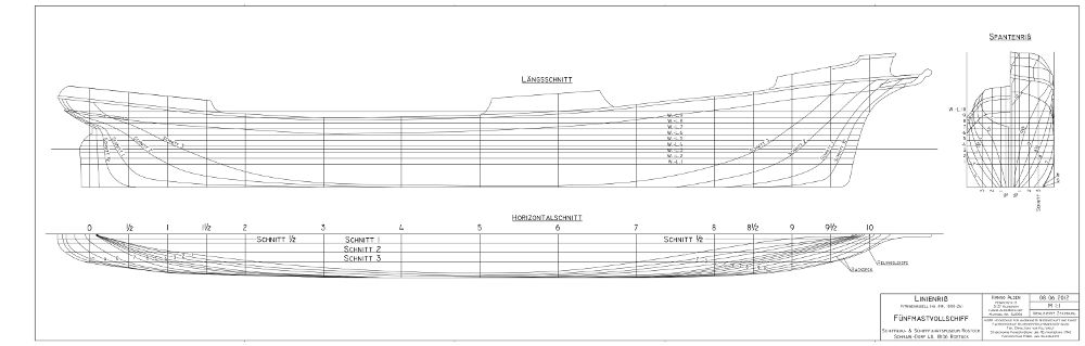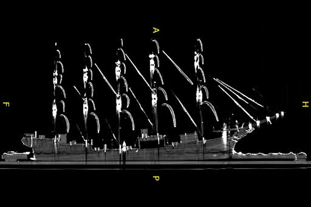 Um einen Vergleich zum vermuteten Vorbild, dem Fünfmastvollschiff 'S.S. PREUSSEN' von 1902, ziehen zu können, wurden detailierte CAD-Zeichnungen angefertigt. Als Grundlage dienten CT-Aufnahmen und Fotografien. Die CT-Untersuchung ergab außerdem einen genauen Aufschluss über die Konstruktion des Modells.