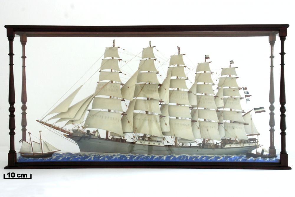 Das Modell wurde einst vermutlich von einem Laien angefertigt. Ähnliche Stücke wurden im 19. Jahrhundert häufig von Seeleuten - teils sogar auf See und demnach mit begrenzten Mitteln - hergestellt.