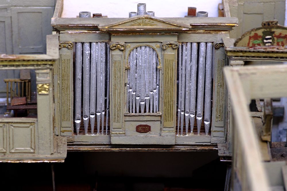 Nach der Restaurierung wurden Abbildungen des Innenraumes des Modells bei geschlossenem Dach gefertigt. Diese eignen sich hervorragend zum Vergleich mit der "echten" Kirche.