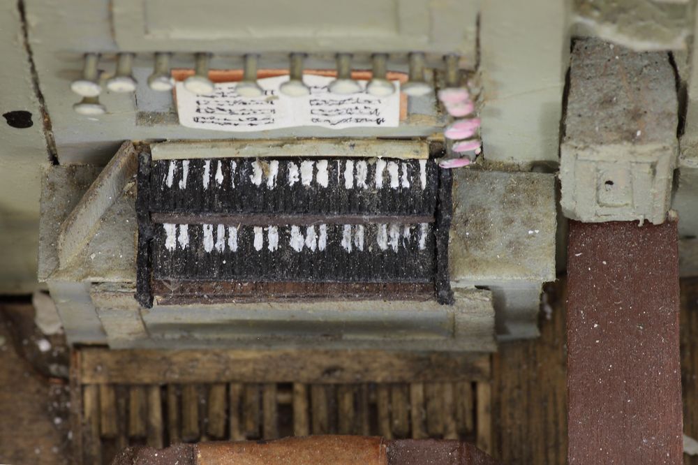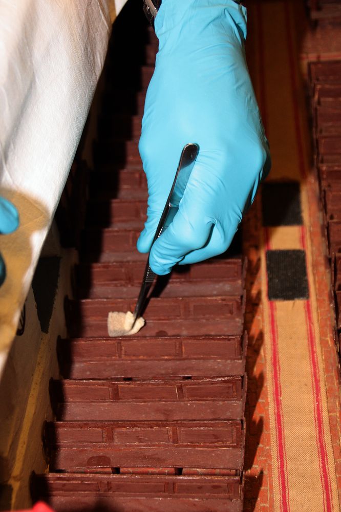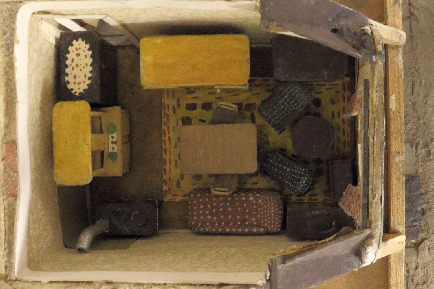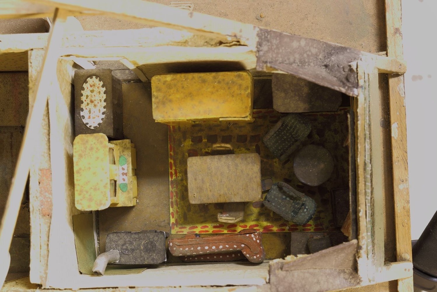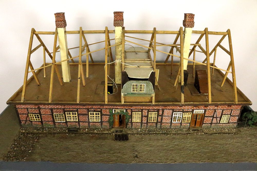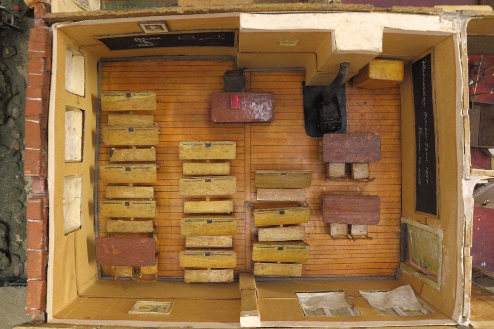 Die restauratorischen Arbeiten umfassten in erster Linie eine aufwändige Reinigung aller Teile. Bei dem Schulkatenmodell hatten sich über die Jahre viele Einrichtungsgegenstände gelöst und hatten ein größeres Durcheinander in den Räumen bewirkt. Außerdem gab es hier viele dunkle Schimmelflecken und dickere Staubablagerungen.