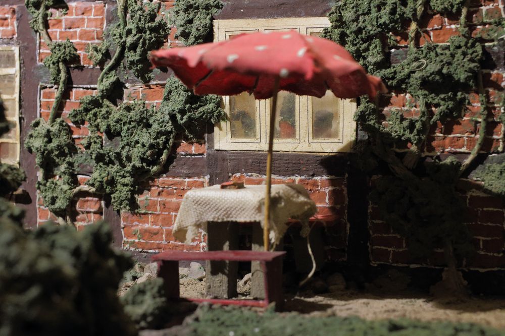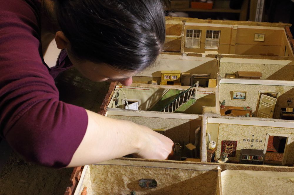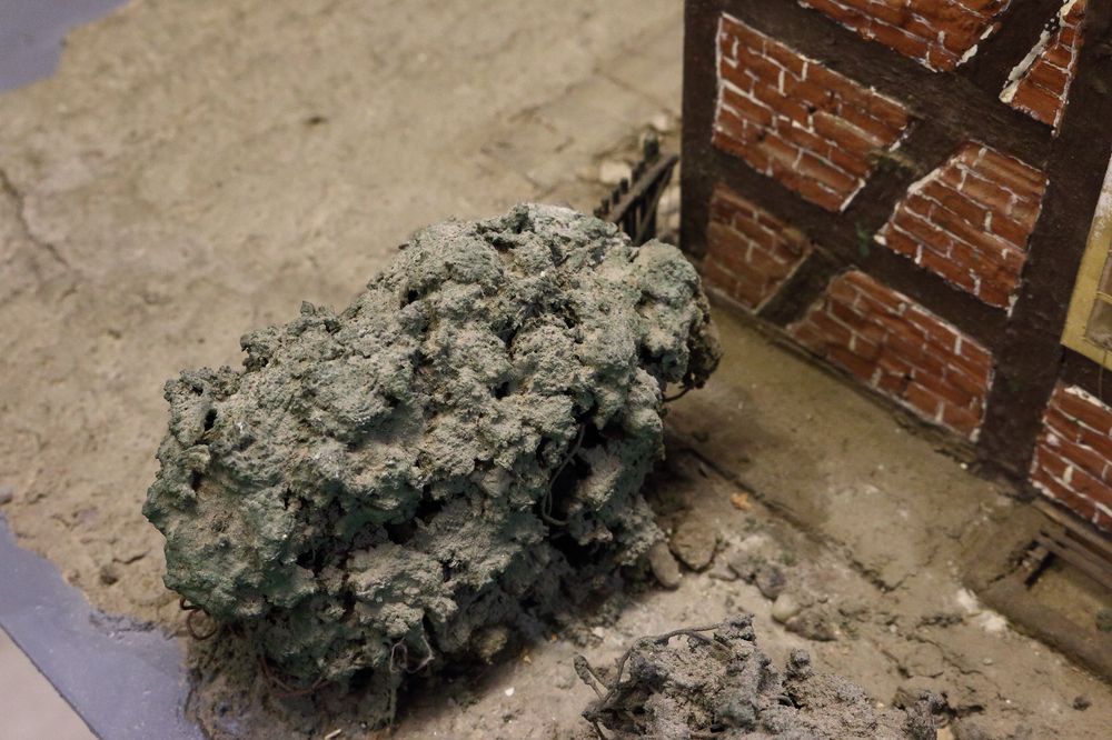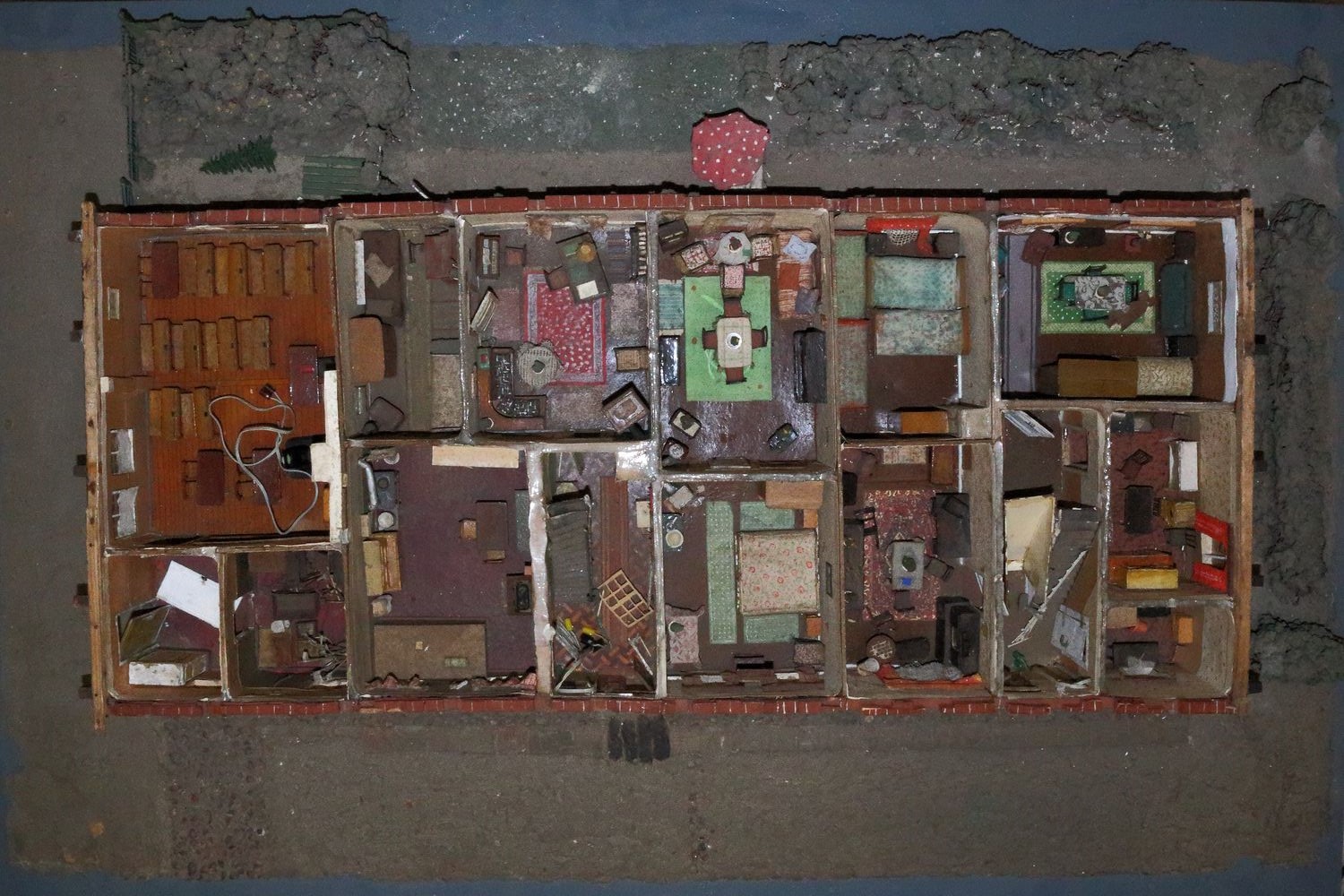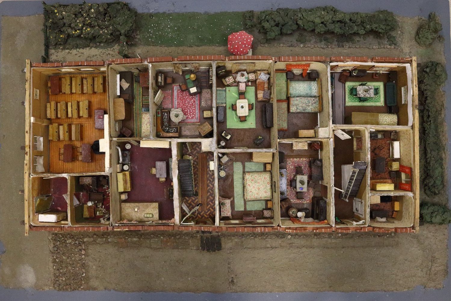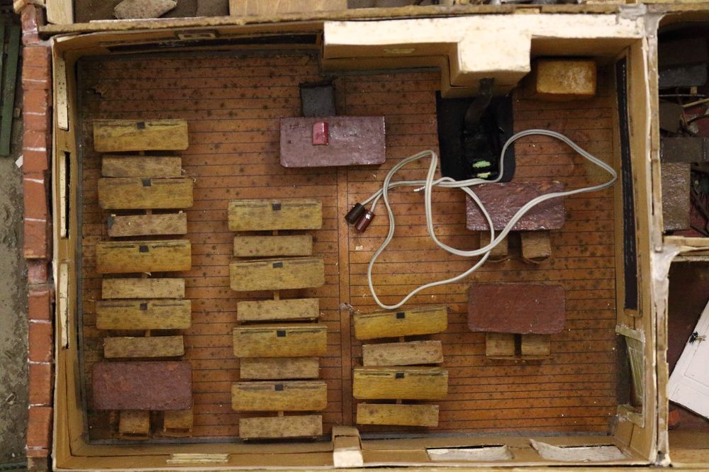 Die restauratorischen Arbeiten umfassten in erster Linie eine aufwändige Reinigung aller Teile. Bei dem Schulkatenmodell hatten sich über die Jahre viele Einrichtungsgegenstände gelöst und hatten ein größeres Durcheinander in den Räumen bewirkt. Außerdem gab es hier viele dunkle Schimmelflecken und dickere Staubablagerungen.