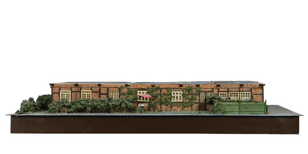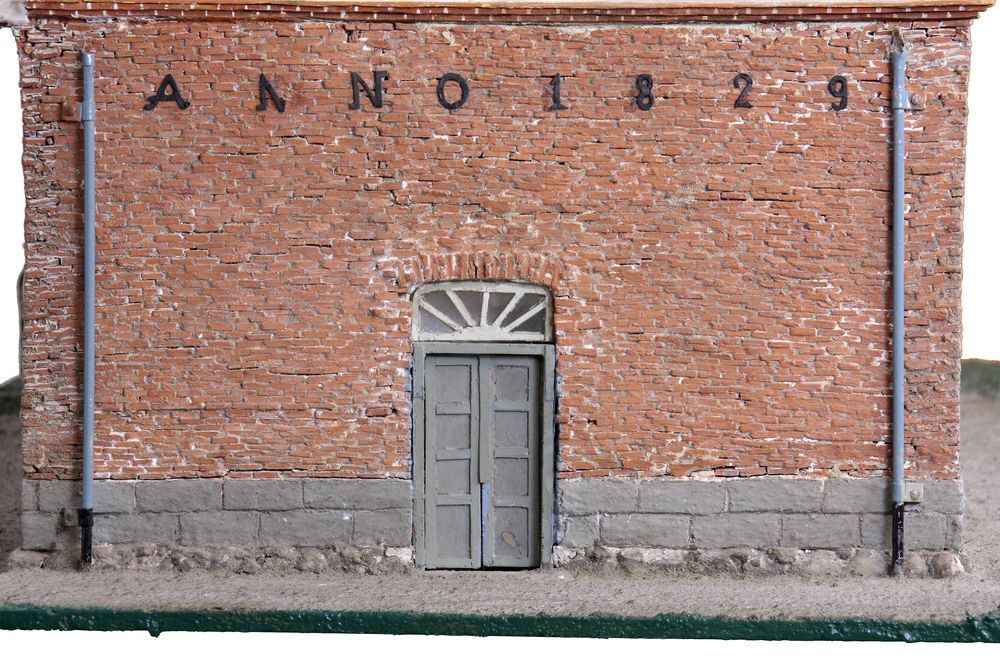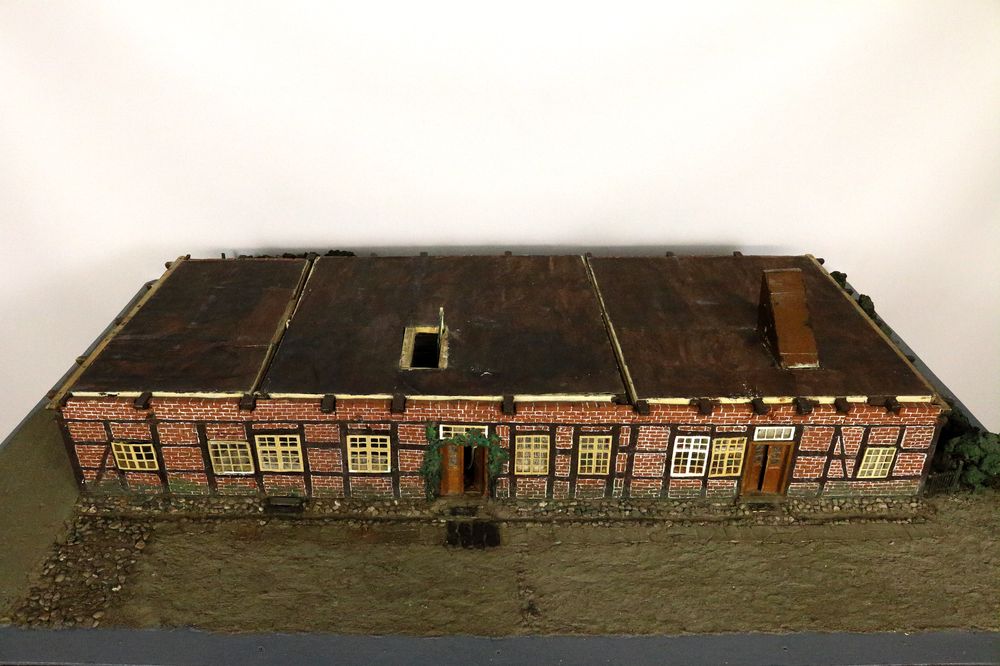 Das Modell der Schulkate wurde, wie der Globus und das Kirchenmodell, von den Schülern und Schülerinnen der 7.-9. Klasse unter Leitung des Lehrers Kaun in den 60er Jahren gefertigt. Ähnlich wie bei der Kirche wurden alle erdenklichen Materialien verwendet. Holz, Gips, Steine, Draht, Papier, Plastik, Pergamentpapier, Faserplatten, Karton, Stroh, Farben, Stoff, Ton, Gummi...