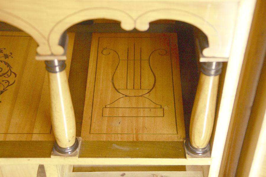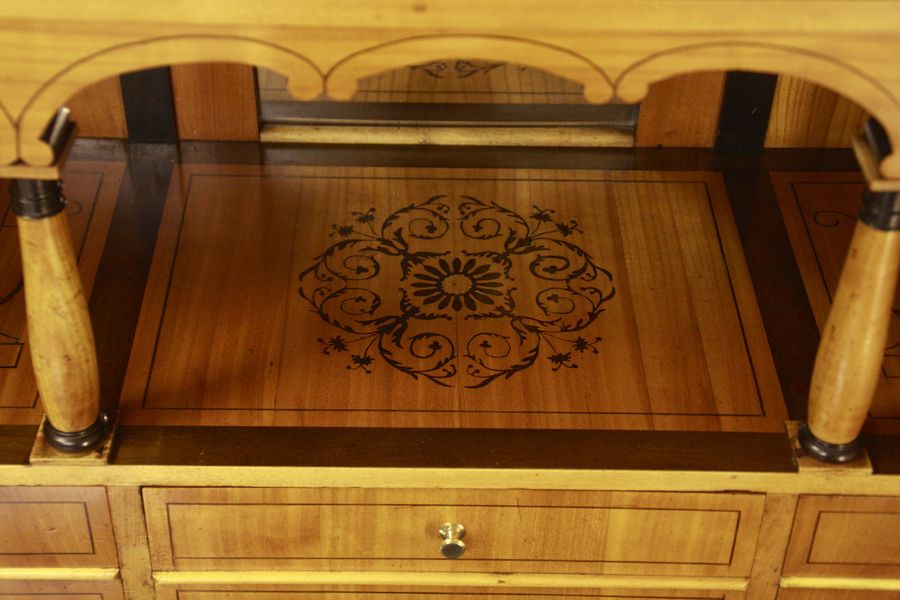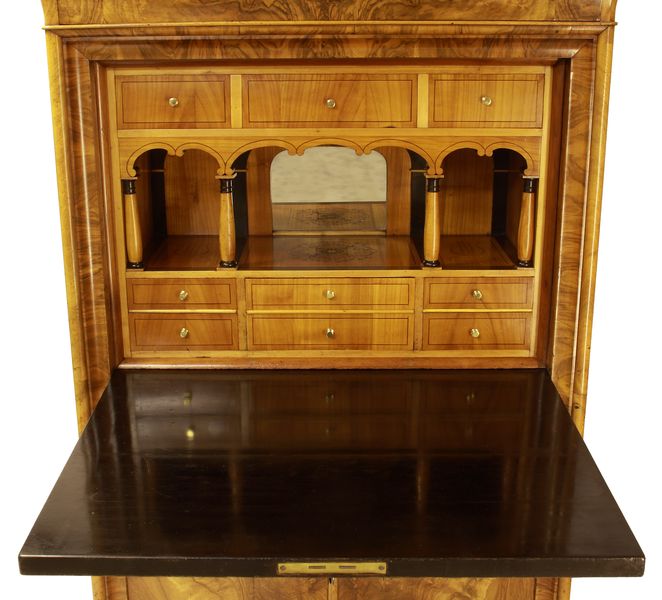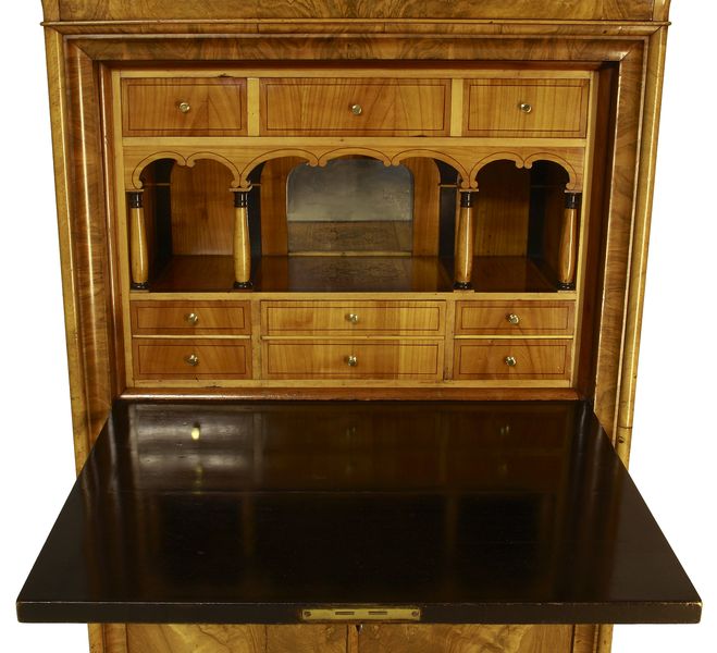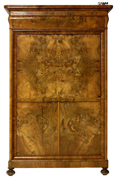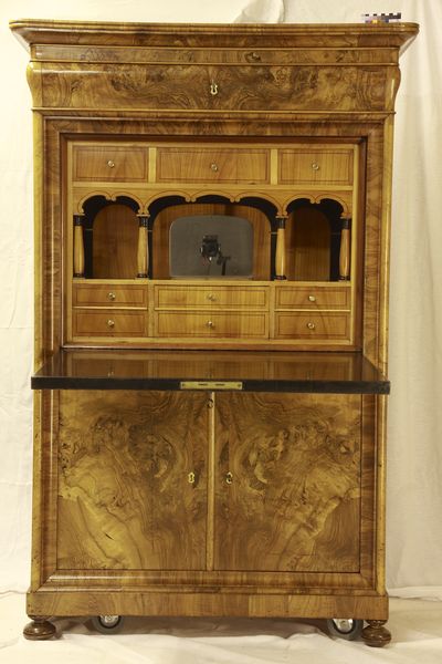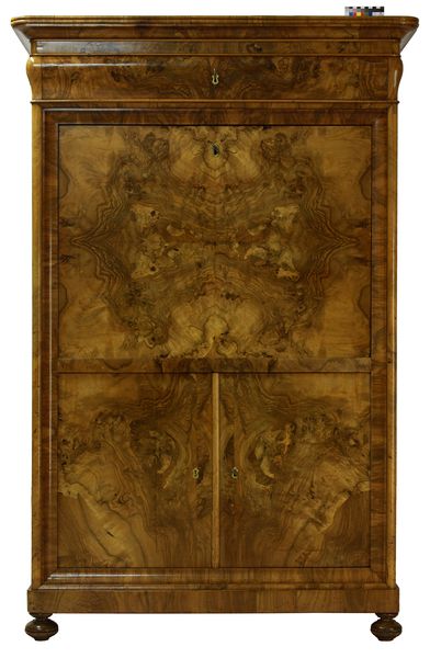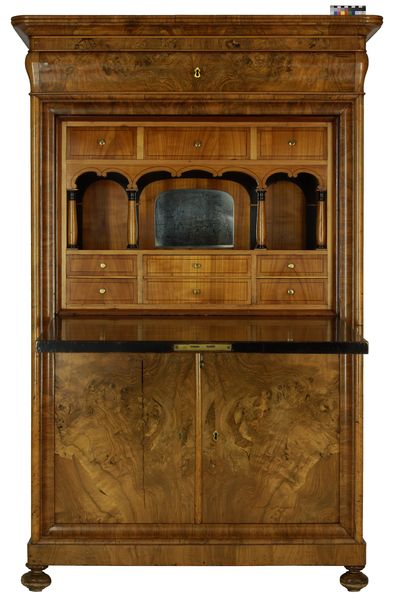 | Materialien: | Nadelholz mit Nussbaum, Kirche und Ahorn furniert, Eiche, Metall u.a. |