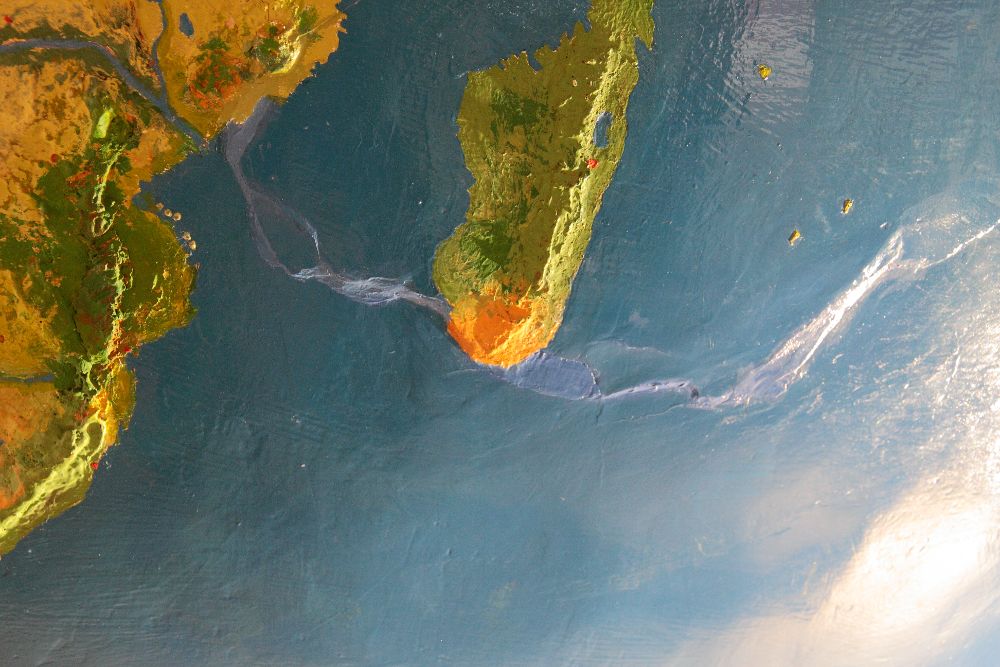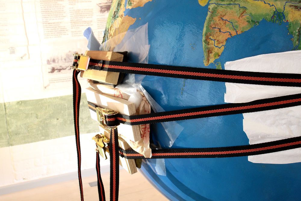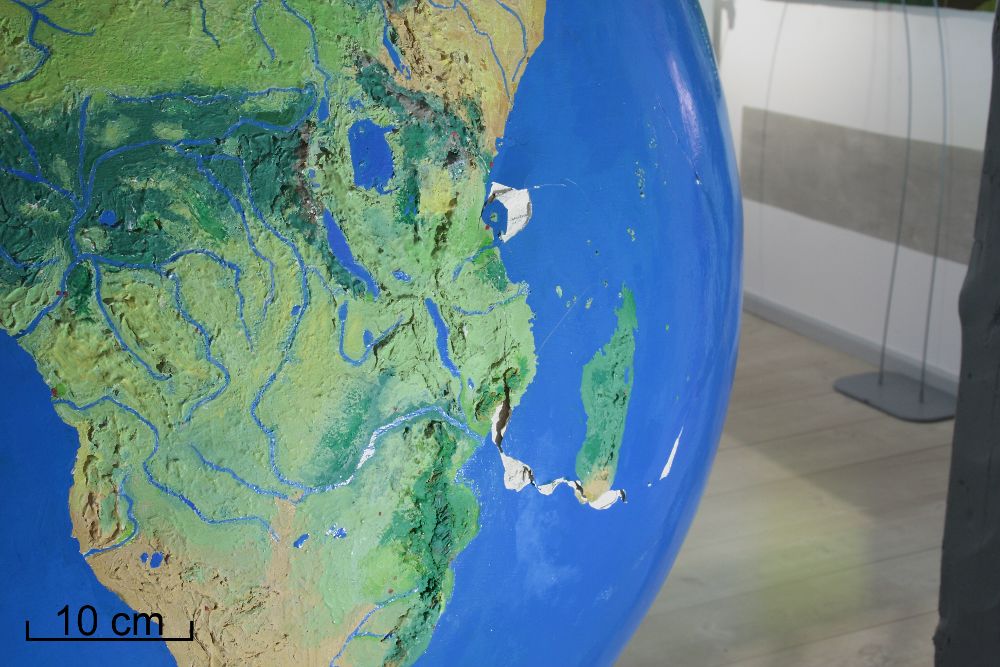 Die hervorstehende Scholle "an der Ostküste Südamerikas" sollte soweit möglich wieder auf das urspüngliche Niveau zurückgebracht werden. Eine Abnahme der Scholle und eine dann eventuell mögliche Beseitigung der Ursache für das Herausdrücken war nicht ohne größere Schäden an der Substanz durchführbar. Daher wurde die Scholle mittels Spanngurten und geeigneten Druckstücken wieder angepresst und verklebt.