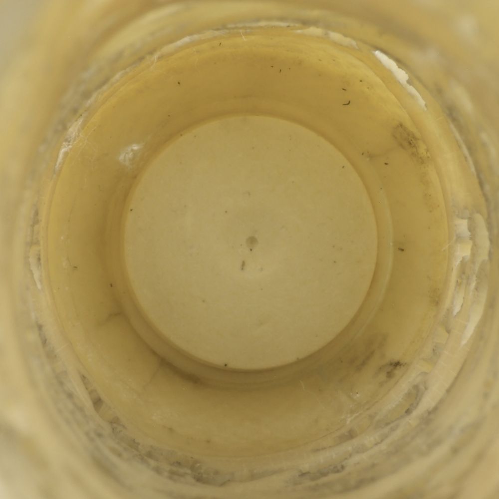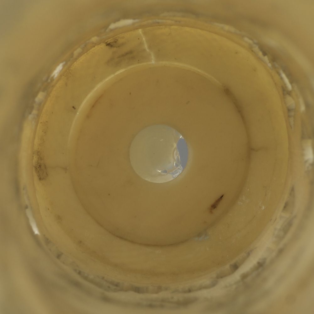 Das Restaurierungskonzept sah eine Reinigung, insbesondere auch der alten Klebestellen vor. Anschließend wurden die Teile wieder mit einem Acrylharz-Klebstoff neu verklebt. An einer Stelle war das Gewinde so weit beschädigt, dass diese Stelle von unten durch eine kleine farblich passende, eigens angefertigte Kunststoff-Kapsel unterstützt wurde.